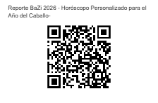 Horóscopo personalizado, preparado en base al pilar del día del nacimiento. Este pilar, que contiene tu Día Maestro, permite un pronóstico más acertado de tu suerte en el año del Dragón de Madera. El reporte incluye: ♦ Cálculo de la Carta BaZi 4 Pilares y periodos de suerte ♦ Detalles sobre la personalidad, según el Qi del día maestro y la estructura del BaZi ♦ Elementos favorables y desfavorables para el equilibrio ♦ Pronóstico del año 2026 ♦ Recomendaciones para mejorar la estructura del BaZi.